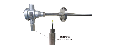 Surge protector and temperature transmitter are installed in the connection head of lightning-protectionand explosion- proof integrated thermocouple or RTD, $urge protector prevents product from damageby lightning or transient overvoltage. This type thermocouple or RTD is safe to use in thunderstorm area.